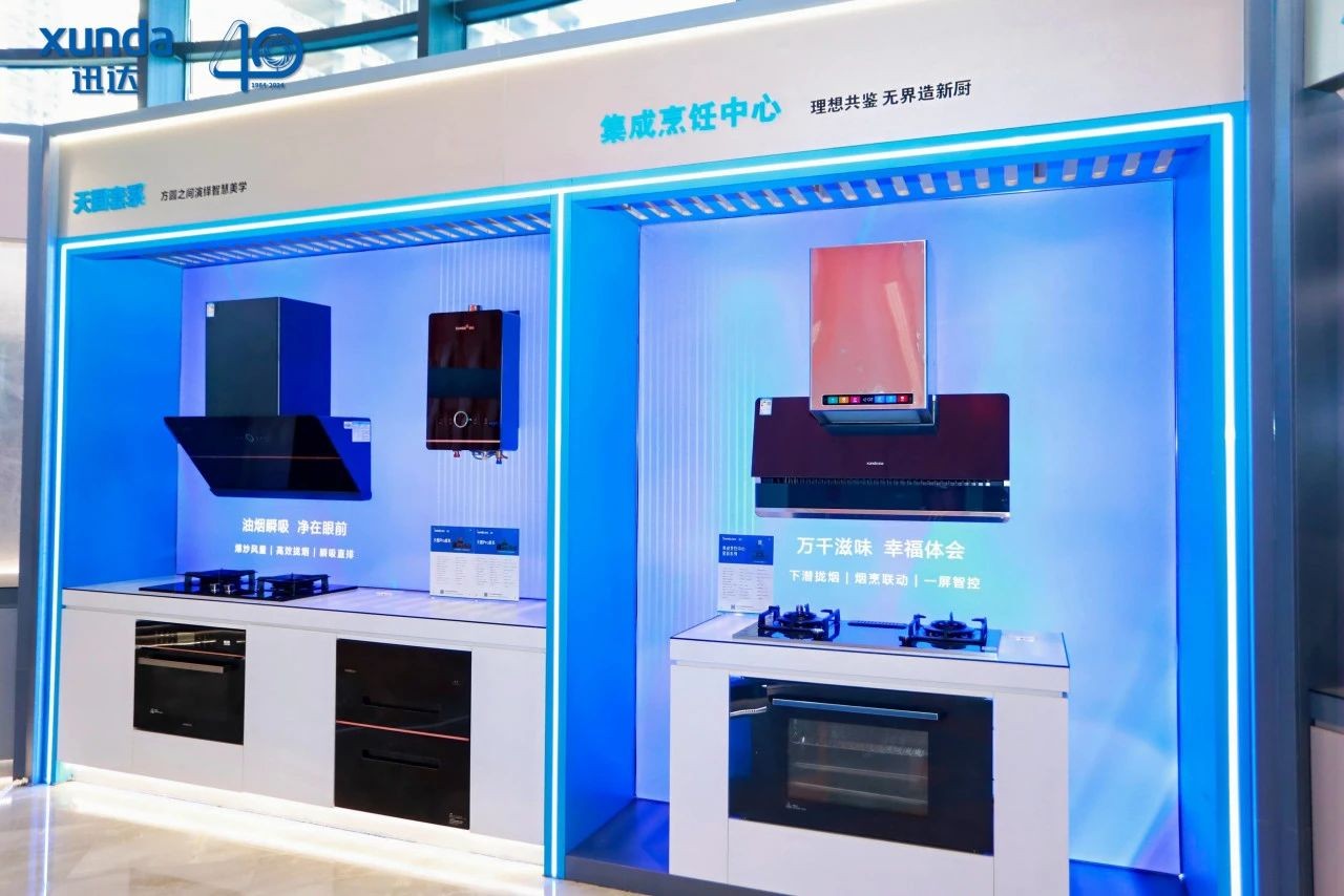 在國薈會展中心北辰廳序廳現場,迅達以新品展覽作為此次四十周年慶典的第一站,面向受邀嘉賓集中展出了燃氣灶、吸油煙機、燃氣熱水器、集成灶、蒸烤炸一體機、消毒柜、洗碗機、集成烹飪中心等8大品類的多款旗艦新品,充分展現了迅達的匠心智造與創新活力。