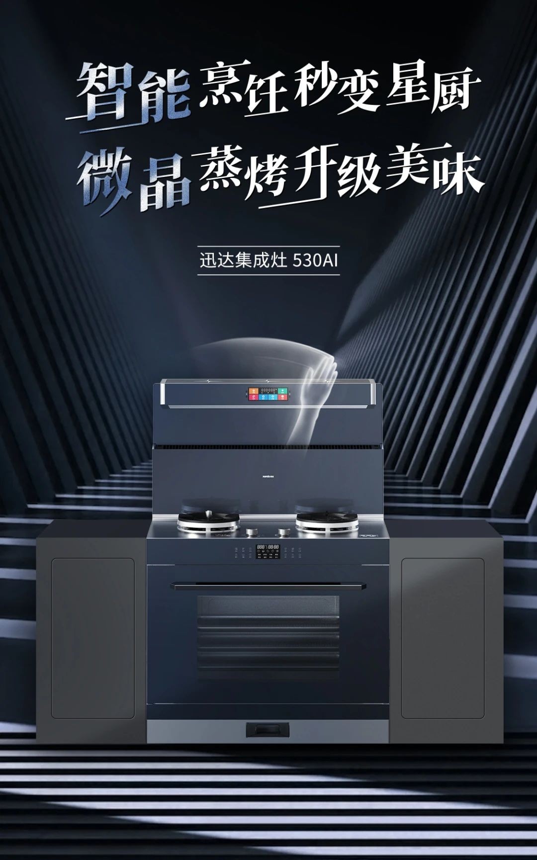 例如,經(jīng)典迅達(dá)天圓套系全新升級為Pro版本,風(fēng)力、火力全面進階,5.2kW大火力匹配25m3/min爆炒風(fēng)量和900pa大靜壓,在滿足了爆炒樂趣的同時,也無懼油煙困擾。而為了適應(yīng)小空間場景和開放式廚房的需求,迅達(dá)還全面更新了7款集成灶產(chǎn)品。消毒款集成灶均升級全腔光波巴氏消毒技術(shù),純物理消毒方式,二星級消毒標(biāo)準(zhǔn),脊髓灰質(zhì)炎病毒滅活率可達(dá)99.99% ,真正做到食品級的安全消毒。新品集成灶530ZKS則升級蒸烤分腔設(shè)計,上煎炒、下蒸烤,15分鐘就能完成一桌菜,朋友聚會更省心。