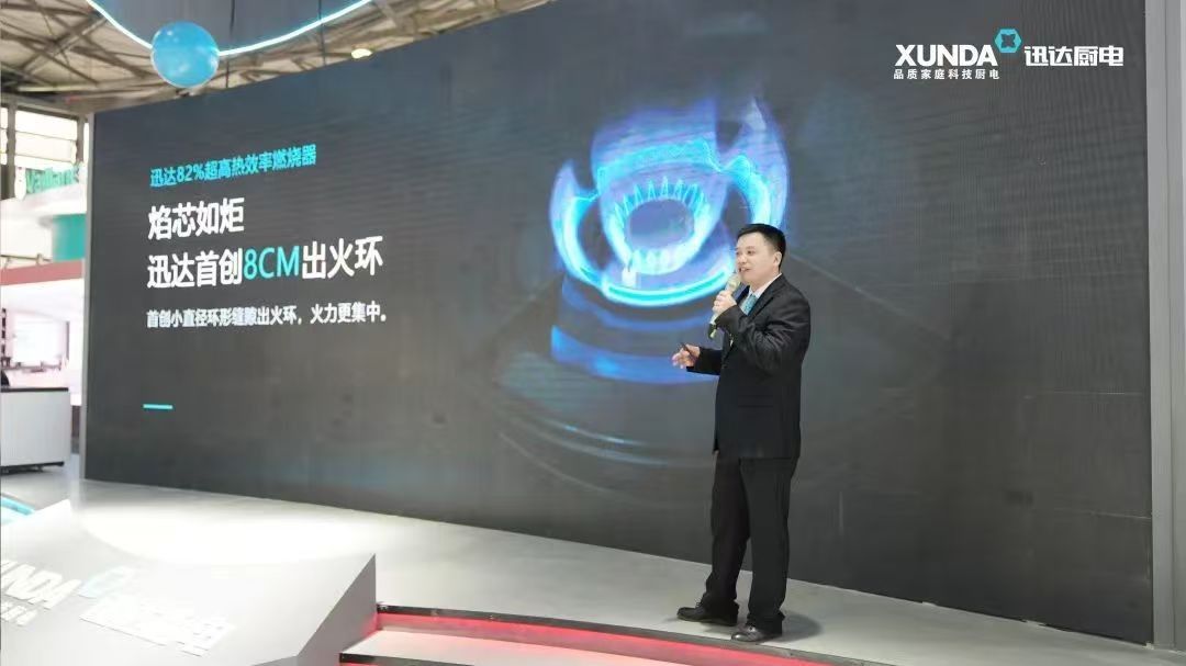 在本次AWE展會(huì)上,迅達(dá)集團(tuán)籌劃已久的“大道至簡(jiǎn),勢(shì)燃新生”2023上海AWE展暨新品發(fā)布會(huì)也于28日正式舉行。迅達(dá)集團(tuán)總經(jīng)理伍笑天、集團(tuán)技術(shù)中心總監(jiān)朱霆、集團(tuán)營(yíng)銷中心總監(jiān)吳世威等領(lǐng)導(dǎo)共同出席,與線上線下的行業(yè)同仁、經(jīng)銷商朋友一起,共同見證迅達(dá)82%超高熱效率環(huán)形薄火燃燒器、集成烹飪中心的首次發(fā)布。